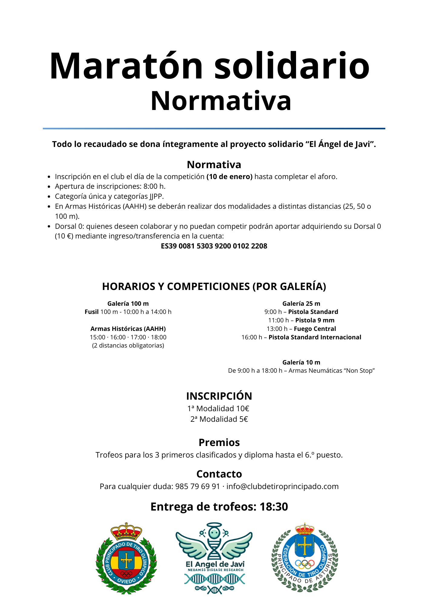 Toda la recaudación se donará íntegramente al proyecto solidario: “El Ángel de Javi”.